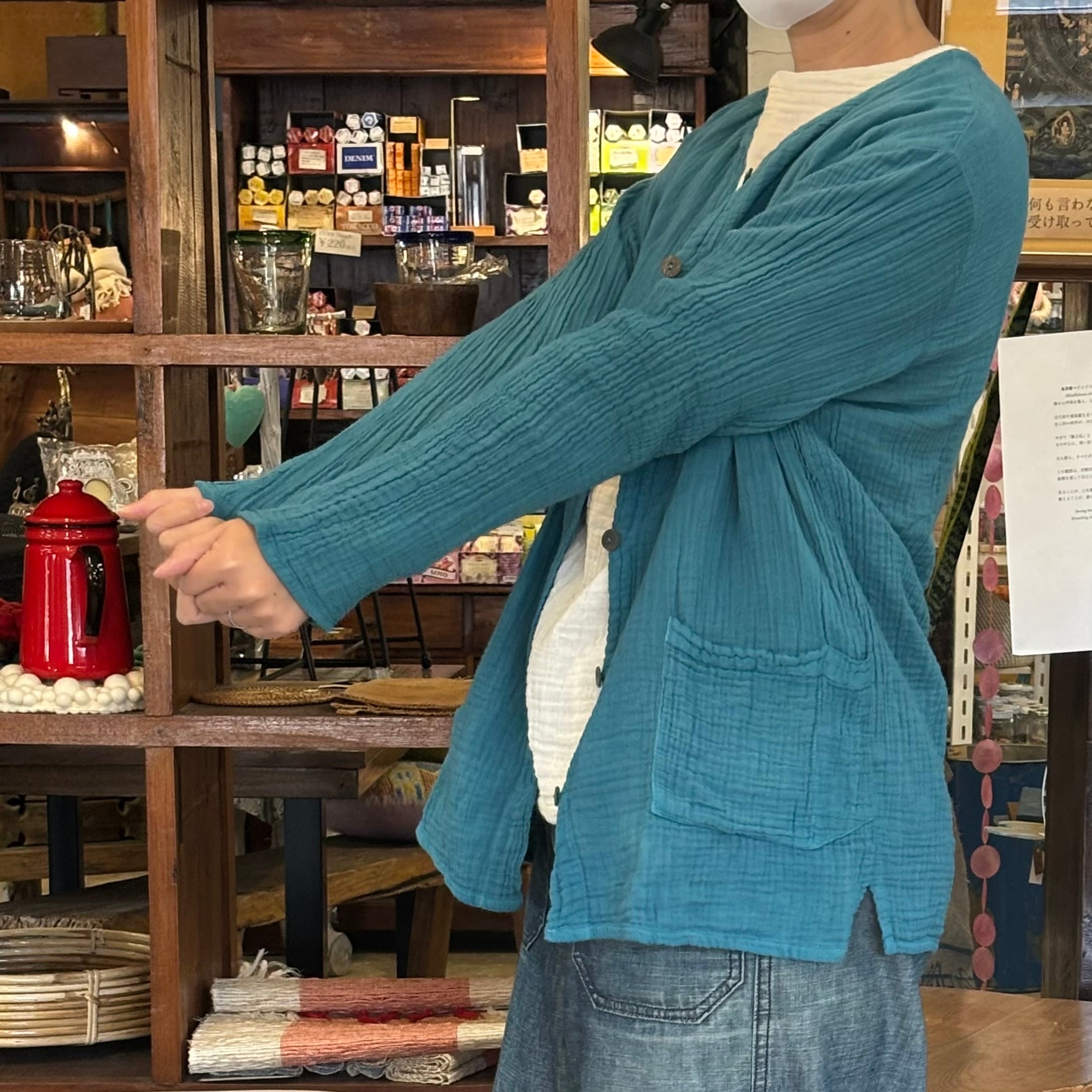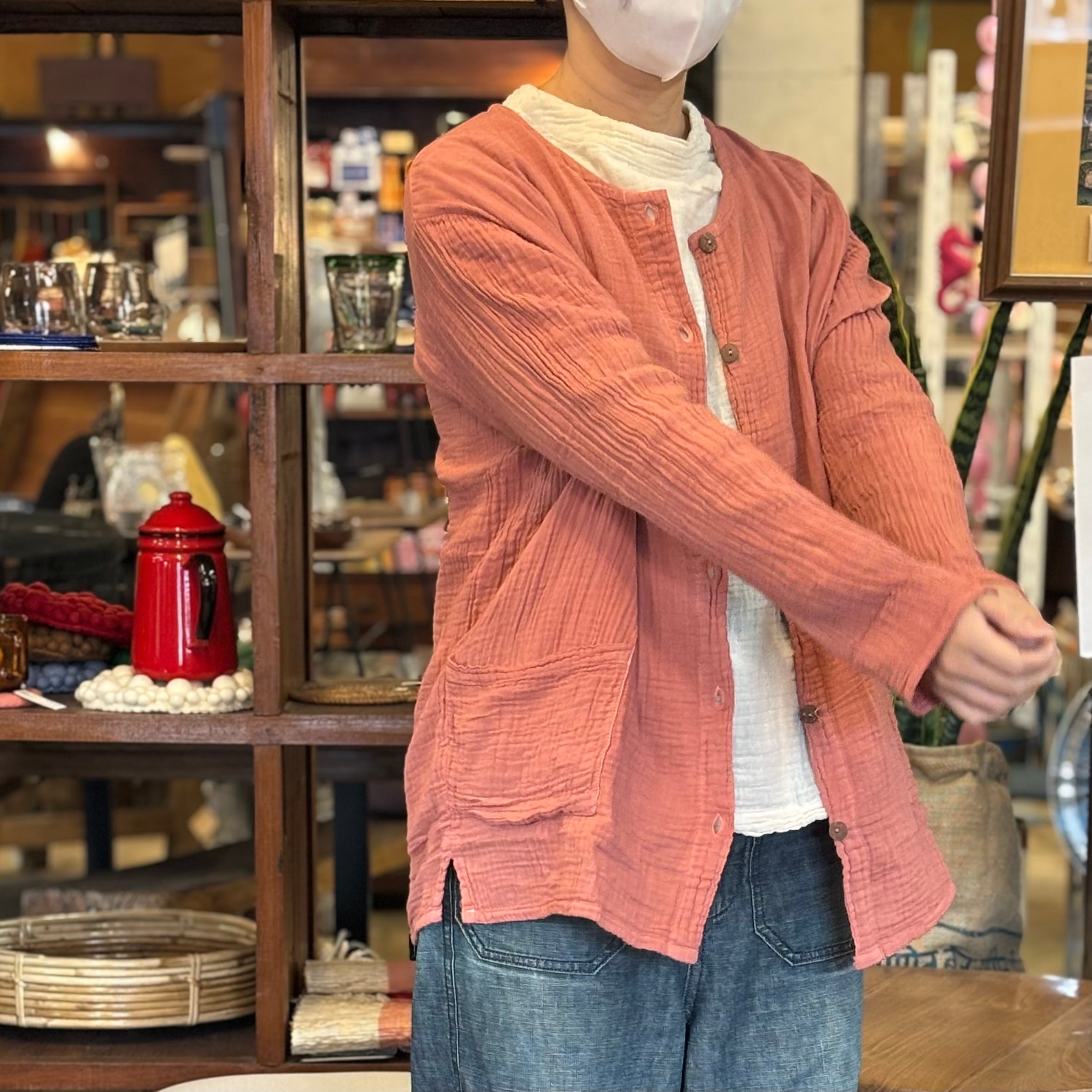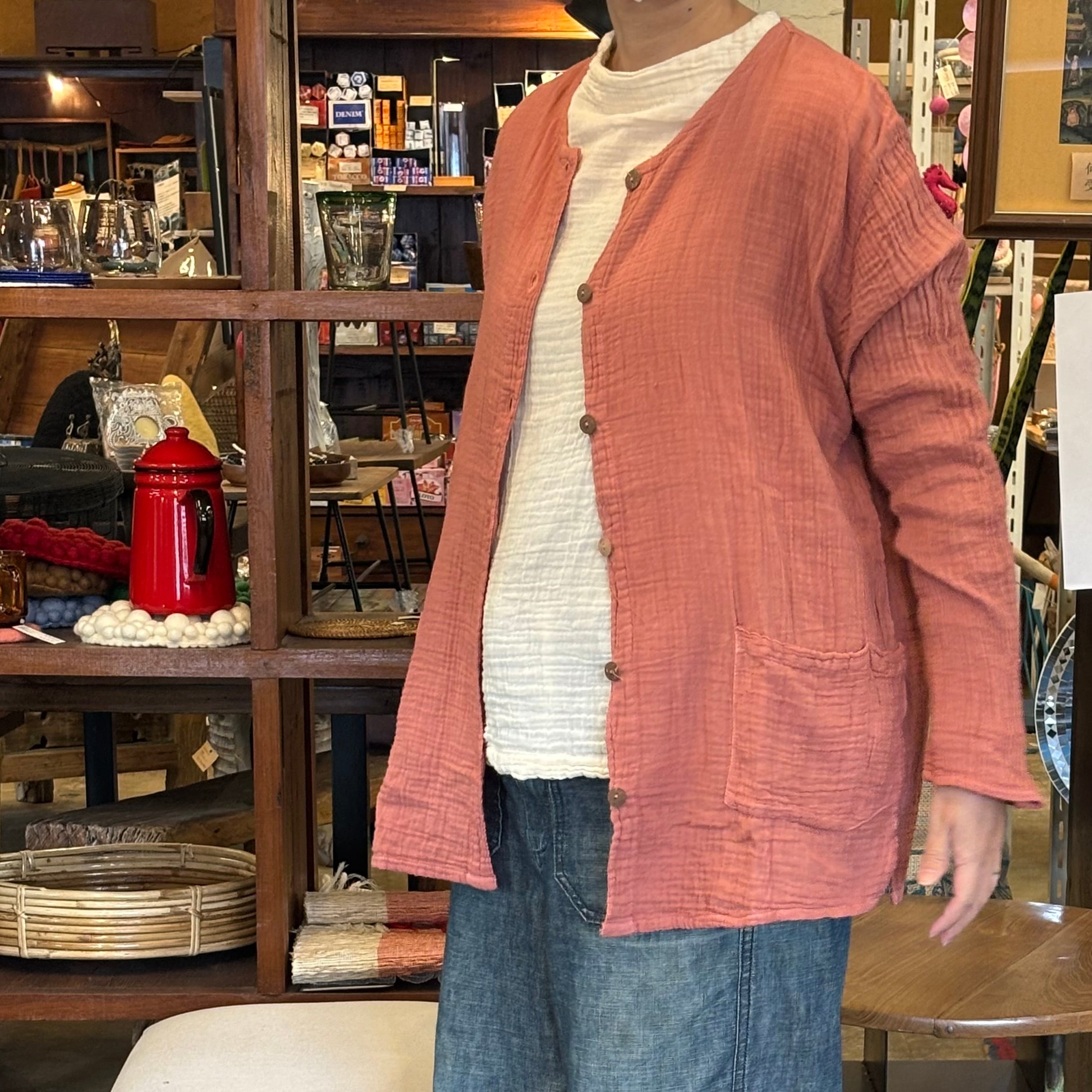 ふんわりと優しい肌触りのダブルガーゼカーディガン